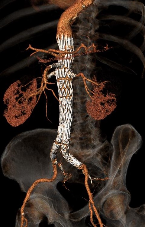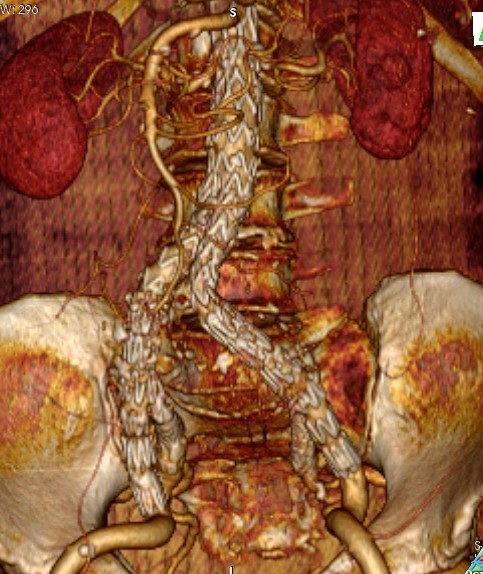 • Η ενδαγγειακή αντιμετώπιση απαιτεί υψηλής ανάλυσης αξονική τομογραφία σε ψηφιακή μορφή (CD), και εξειδικευμένες μετρήσεις από την πλευρά του χειρουργού, που θα καθορίσουν αν το ανεύρυσμα είναι κατάλληλο για την τοποθέτηση stent-graft, αλλά και ποιο μόσχευμα είναι το καταλληλότερο για την συγκεκριμένη ανατομία. Σήμερα με την πρόοδο της τεχνολογίας, έχουμε στη διάθεση μας πολλά ενδαγγειακά μοσχεύματα διαφορετικού σχεδιασμού και τεχνολογίας που επιτρέπουν την ενδαγγειακή αποκατάσταση των περισσοτέρων ανευρυσμάτων, Είναι σημαντικό ο αγγειοχειρουργός να έχει γνώση και εμπειρία από πολλά μοσχεύματα ώστε να επιλέγει το καταλληλότερο μόσχευμα για κάθε ασθενή, αποσκοπώντας τόσο στην άμεση όσο και στην μακροχρόνια επιτυχία.